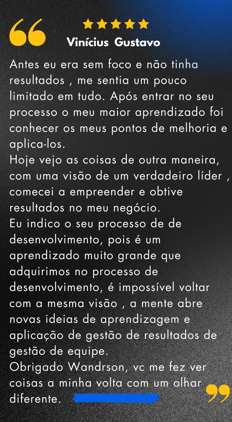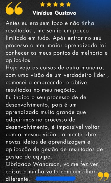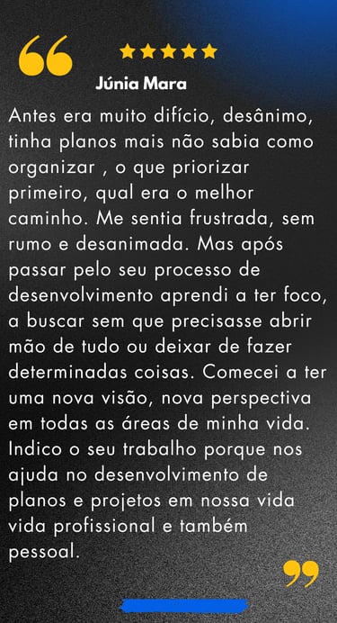 "Transformamos vidas e carreiras com estratégias que funcionam de verdade. Imagine desbloquear seu máximo potencial e conquistar resultados que até ontem pareciam inalcançáveis!